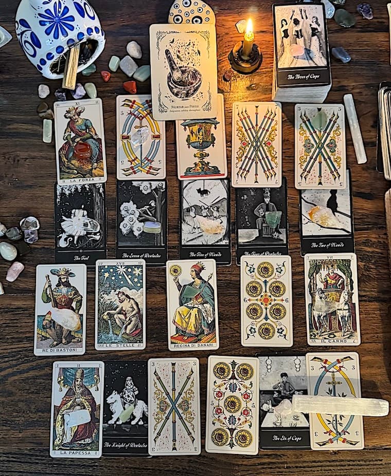 Healing arrives through reflection. The 6 of Cups recalls memories or emotional connections that bring closure. The 5 of Pentacles and 3 of Swords reveal past wounds ready for release. Let compassion and forgiveness open the door to emotional renewal.