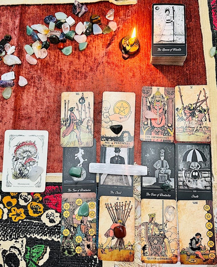 Overall Capricorn Outlook: This week highlights balance (2 of Pentacles), release (The Devil + Death), and structure (4 of Pentacles). With the Queen of Wands and Mushroom guiding your energy, Capricorn steps into a powerful cycle of renewal—turning challenges into stepping stones toward stability and success.