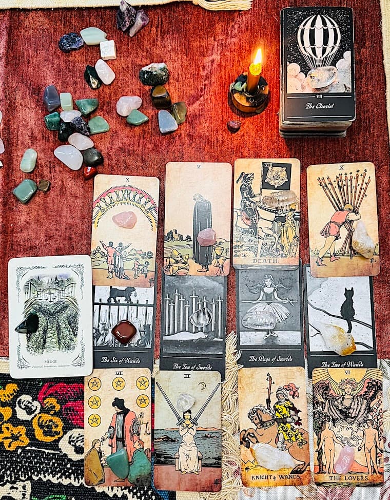 The week closes with reflection and decision-making. The 2 of Wands signals future planning and progress. The 10 of Wands warns against overextending yourself, while The Lovers points to the importance of alignment and commitment to your true path.